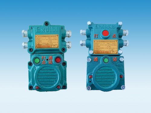 該產(chǎn)品集打點按鈕、防爆燈、防爆電鈴、三通接線盒為一體,有四個出線口,取代了三通接線盒,用高亮發(fā)光二極管和礦用防潮揚聲器取代了防爆燈和隔爆電鈴。
